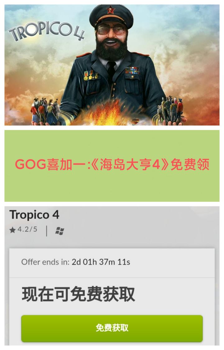8/27号上午,GOG官方公布了一款免费游戏❗❗❗截止至在8月29日晚上9点之前,可在GOG平台免费获取模拟经营游戏《海岛大亨4(Tropico 4)》免费的游戏就是香,抢到就是赚到#今天游戏圈发生了啥 #游戏资讯 #GOG