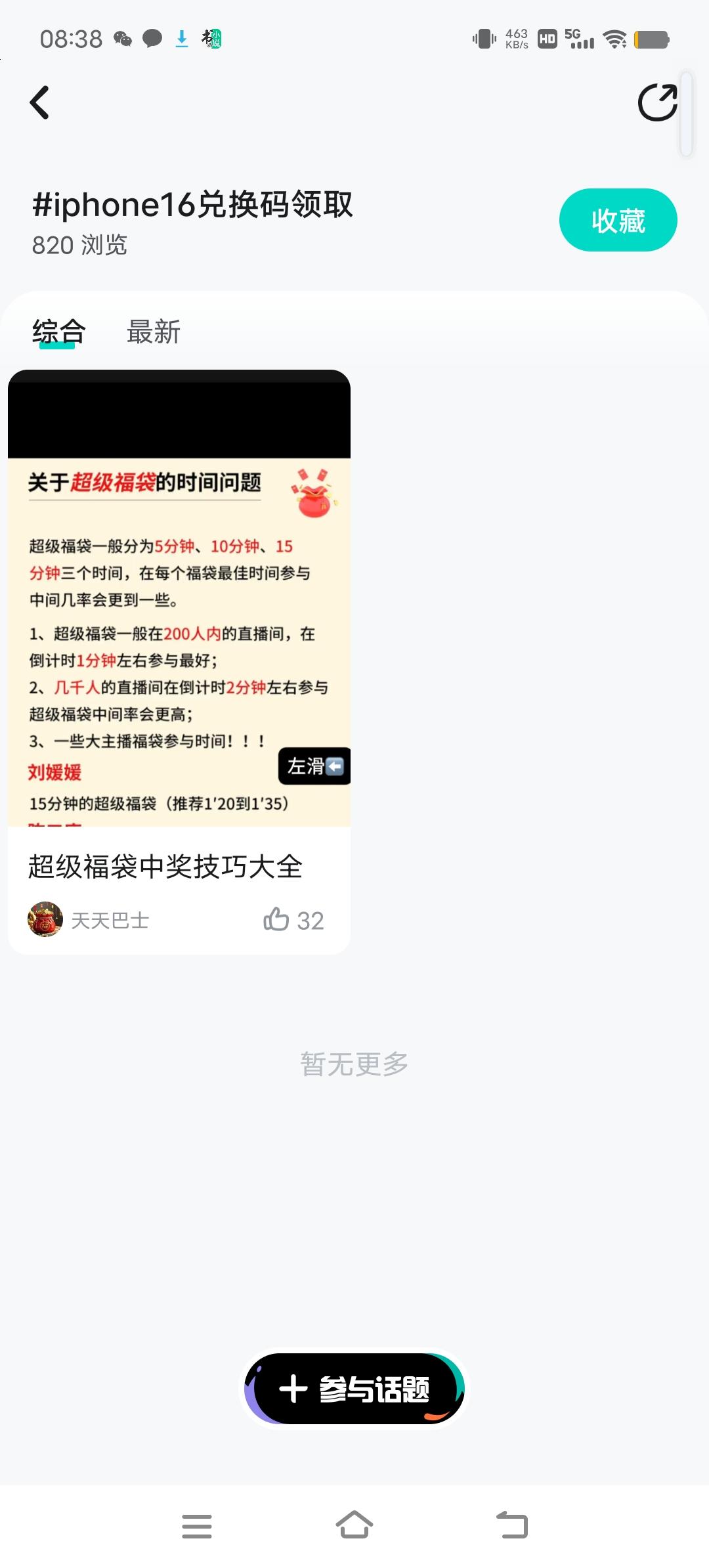 #iPhone16兑换码领取 #5分钟必中教程 #iPhone16兑换码领取 #5分钟必中教程 #iPhone16兑换码领取 #5分钟必中教程 (点击“蓝色字体即可跳转领取”每天限额30份) #每日推荐直播榜 大数据把我推送给下一个好运的人超级福袋一般分 为分15分钟、10分钟、5分钟三个时间,在每个福袋最佳时间参与,中奖率会更高一些。1.超级福袋一般在200人内的直播间,在倒计时1