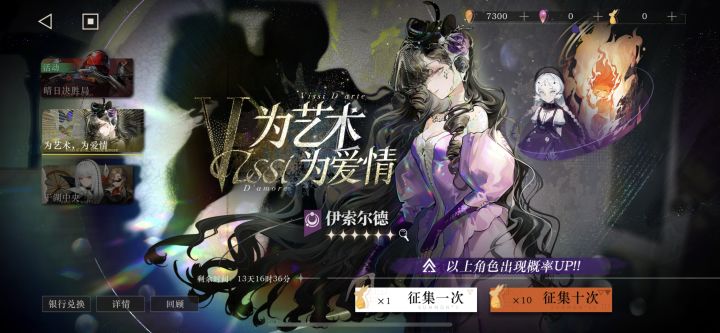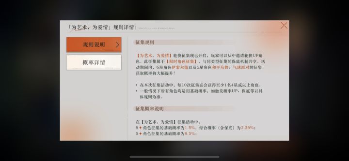我之前记得1999优化的时候说,以后卡池的第一个十连必出五星角色的。但是昨天伊索尔德的轮换池更新后,第一个十连却全是三星四星,没有五星角色,我还以为出错了。结果一看规则描述,只在J的卡池征集规则里有一句“前10次征集必出5星及以上角色”,而伊索尔德的轮换卡池描述里就没有这句话了汗汗合着我还以为以后每个卡池都有呢,看来只有第一次up池才有了,算了,就当我想多了吧…… #