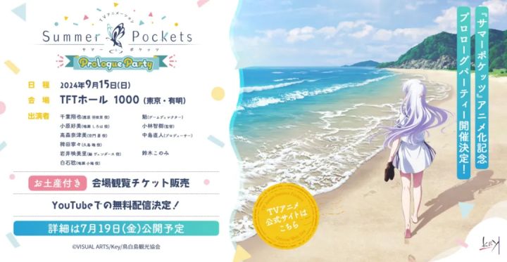 本周,Key 社正式公布了《Summer Pockets》动画化的详细消息,并启用了官方动画网站。同时,官网和油管官方频道也同步公开了介绍动画故事情节的宣传视频,对此感兴趣的玩家可前往官网或油管官方频道了解更多信息。《Summer Pockets》是由 Key 开发,并于2018年6月29日发布的一款美少女视觉小说游戏。这款游戏的故事围绕着男主角与濑户内海上一个名为鸟白岛的岛屿上的女孩们之间的邂