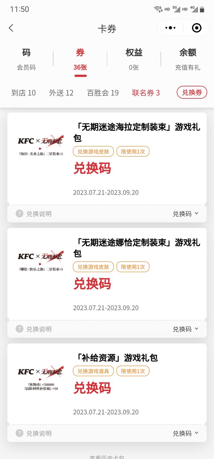 刚发现我有一个这个,还有四天就到期了。有宝子需要的吗,先到先得喔。只有一份#kfc联动无期迷途