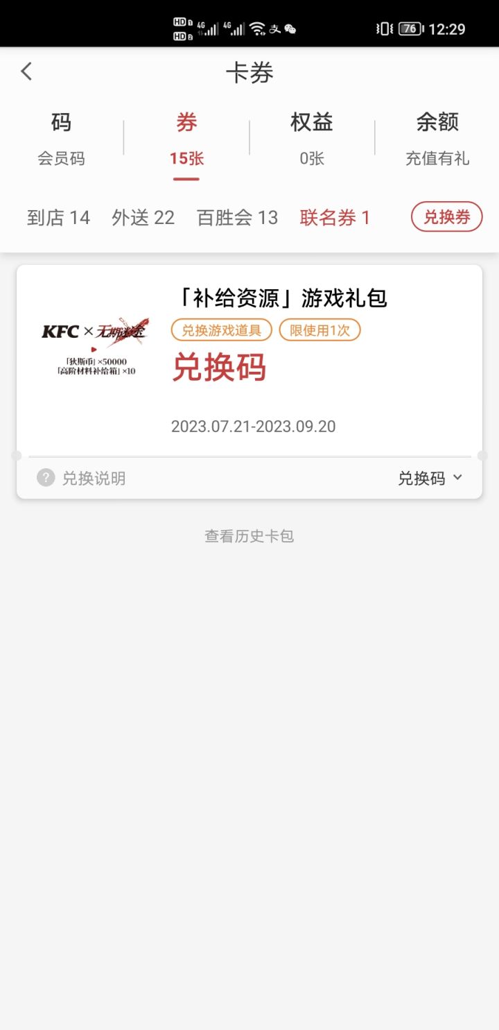 KFC联名码赠送