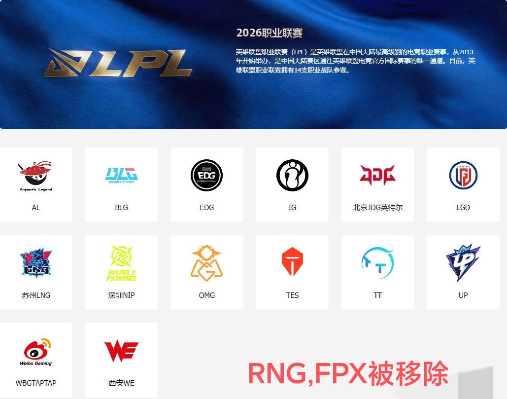 时代落寞❗LPL官网移除RNG和FPX🔥🔥🔥