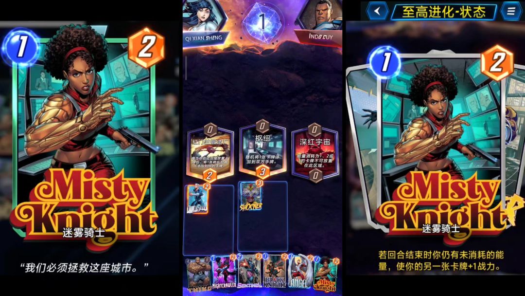 B站链接 BV1b6gzeLESY,Marvel snap 卡牌图鉴填坑,一直以来都想做一个图鉴,感觉手机录制的展示效果有一点差,下次试试用电脑,做一个单独卡面加实机 系列 1,一池卡,无特殊效果组,迷雾骑士,震手,镭射眼,石头人,恶型怪,绿浩克,这里是指在一池的时候,给萌新科普一下至高进化状态是指卡组中带了系列 5 的至高进化这张卡时,这 6 张卡会增加技能效果。 国服漫威终极逆转前两天已经开始