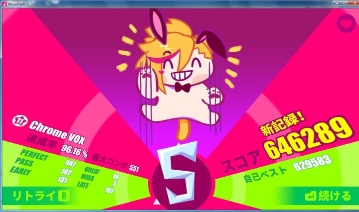 你说你看到黑色高级车在跳火圈?你看错了它是在跳旋转音符啦~( • ̀ω•́ ) 前面有怪物还是齿轮什么的通通给他撞过去就对啦~~(づ′▽`)づ 由Rotaeno和Muse Dash联合举办,超~好玩的派对即将开始! 飞船趣味赛、音乐演奏会、偶像演唱会...在这次派对一次玩得够! 别问为什么这三个活动看起来没什么关联之类的,反正好玩就没问题啦~~~d(`・∀・)b 7月17日,派对上不见不散! ▼曲