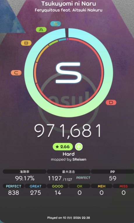 跨年进程到了第二阶段:hello BPM 202 3210阶段#osumania