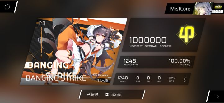刚开始以为随便推一会就能收了,没想到推了两三天,手癖都出来了也是拿下16首收了(虽然是水16),p位15.0→16.0这首曲子in和at加起来爽吃了0.06左右,同时霸榜我的p1和b1这个月估计能上16了#音游 #phigros #phigros推分
