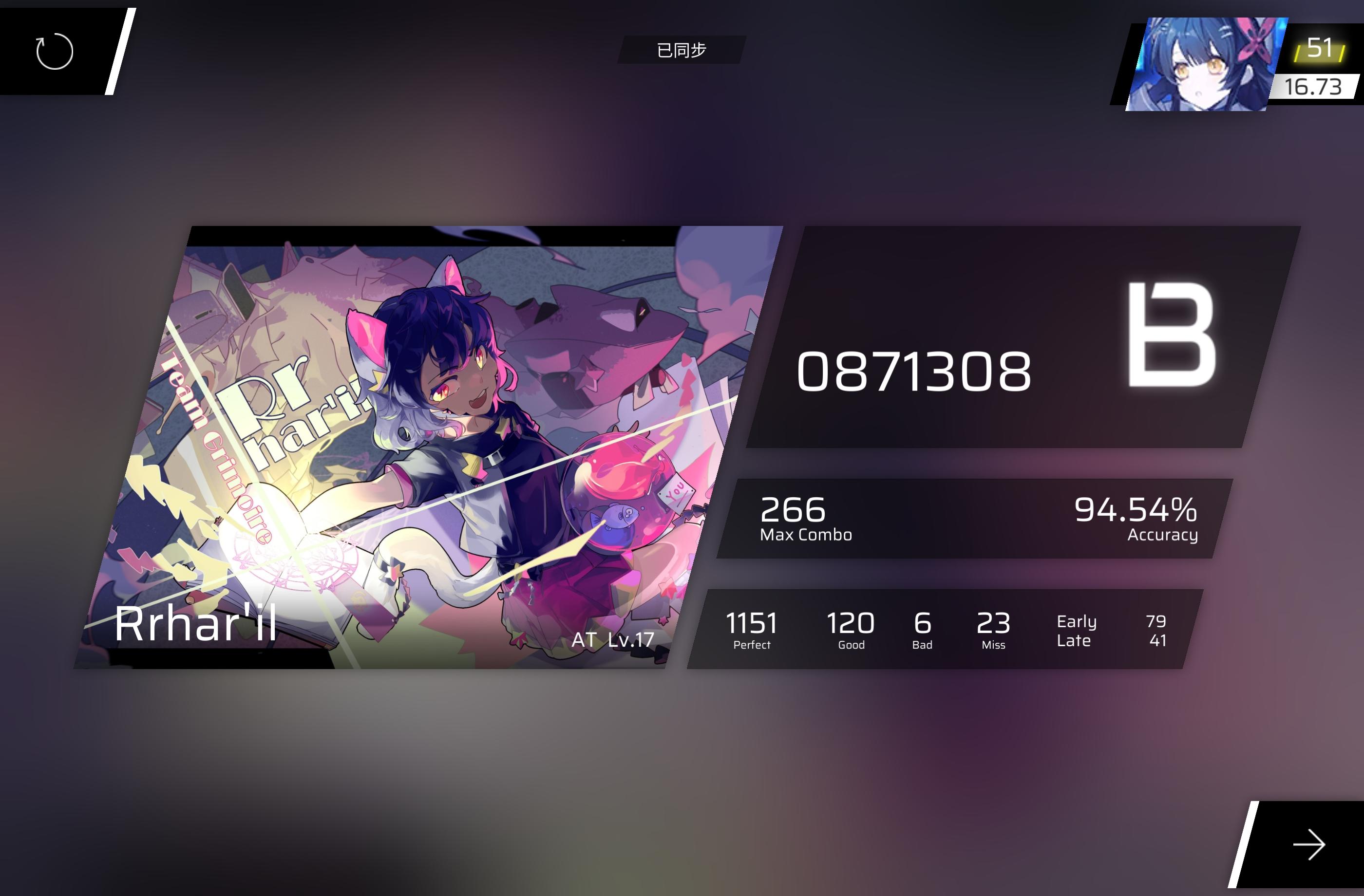 #phigros #phigros推分 #phigros痛苦瞬间 #phigros萌新 最终还是战胜了Rrhar'il。这也算是一种突破吧,双指向多指迈出的一大步。从95.8%到98.63%真的很不容易😭😭😭泪目了家人们。最后,在16.67,所有的AT17都进入了我的b30😋(最后一张图)