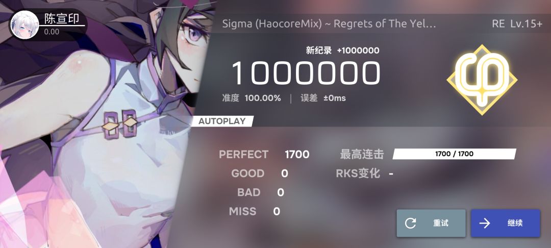 力竭了 完完全全能P 可惜糊黄键糊早了 遗憾退场 又浪费一个寒假😘😘😘 #phigros #phigros不鸽指南 #phigros不鸽指南分享 #phigros收藏品 #phigros曲师 #phigros查分攻略 #phigros魔王曲 #游戏日常phigros萌新 #节奏大师联动phigros #音游phigros