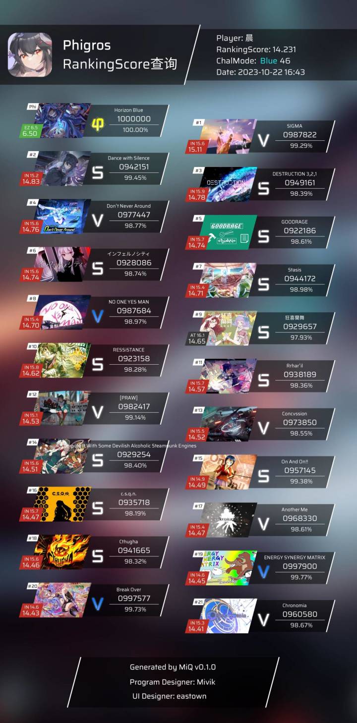 牢领镇楼可能我就是没有引诱天赋呗,玩了这么久了快一年了🕶加上没法用平板打 rks很久才动一下😋虽然新手村还没进 但是已经提前丧失了推分的兴趣🤔偶尔还有点逆天倾向🙄打的好的几个也是纯手感运气 ee额大概就是所谓瓶颈吧?好像各方面都提升不了 额这个多练我也是练了没效果🤣👉😨#游戏讨论#phigros#phiros新手问题