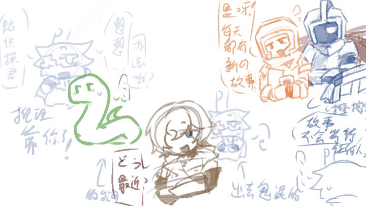 p1p2表情包描改(嗯)p3是一点关于歌洛的臆想……(?)大概是斜刘海在很狼狈的时候垂下来会看着很凶很萌p4骑士同盟he剧透有(?)可能是两位最终战后脱力的休息吧.jpg以及断枪片段p5是乐土三个,本源上的存在?脑了互动但不打算发在tap上p6是团长跟player(特指本人)的互动xp7全图包含要素:蛇之命/铃兰之剑/元气骑士 #pl小窝 #游戏杂谈 #同人二创 #同人创作 #游戏日