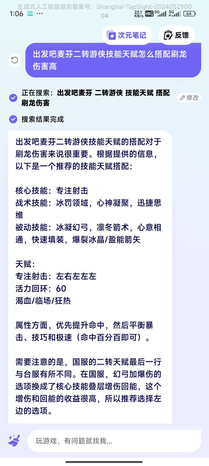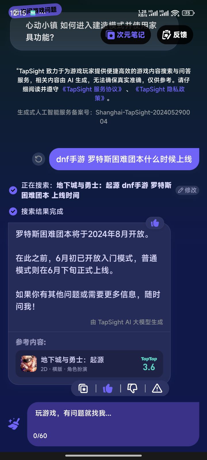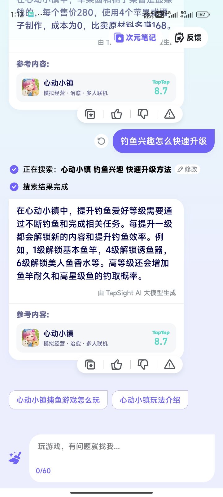 发布了如下更新1. 大量更新了知识库,对于心动小镇、麦芬、dnf等的攻略更新,做了大量适配,可以更精准的回答细节问题2. 推理速度大量优化,相比之前平均下降10s左右#TapSight #TapTap智能搜索 #心动小镇 #心动小镇攻略