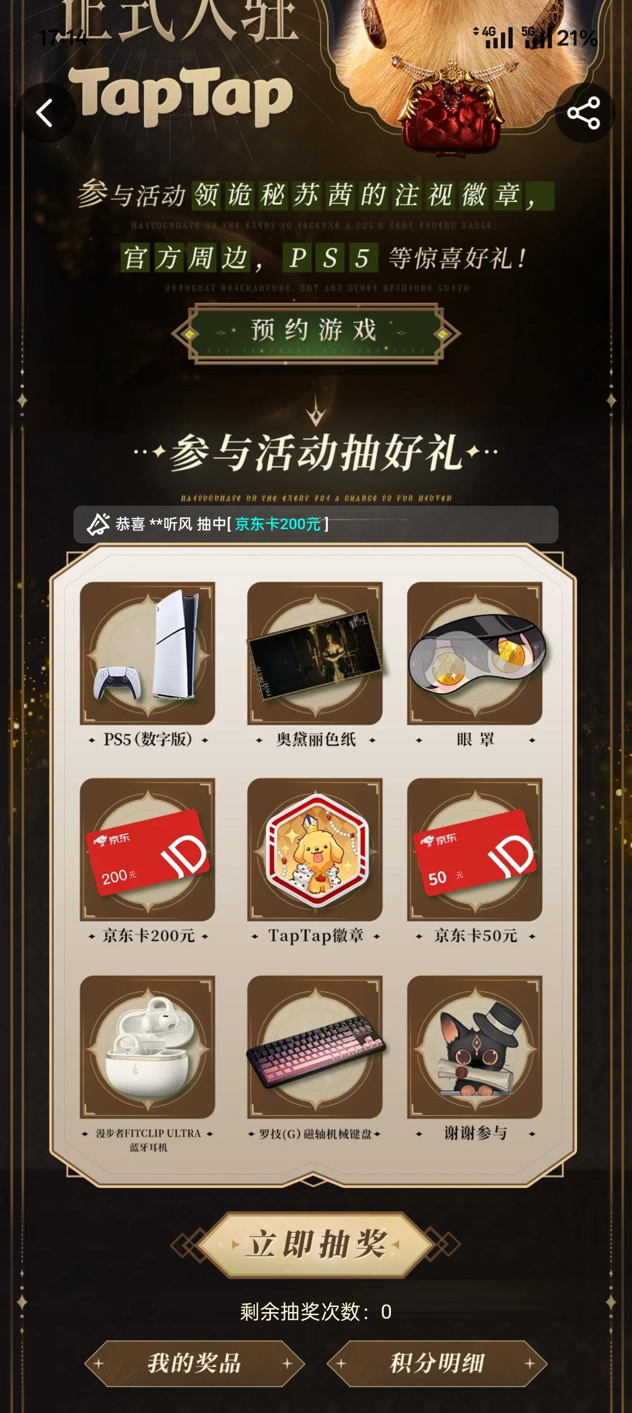 预约游戏即得头像框,抽奖可得徽章。效果可以看我现在的头像框和徽章#TapTap头像框 #TapTap徽章 和抽奖快来 TapTap 加入「预约《诡秘之主》赢限定独家头像框、PS5、京东卡等海量福利!」 🕹 SCSLn5hl 🎮 https://tap.cn/lHSB1MS0G 复制整段,打开 TapTap 发现好游戏
