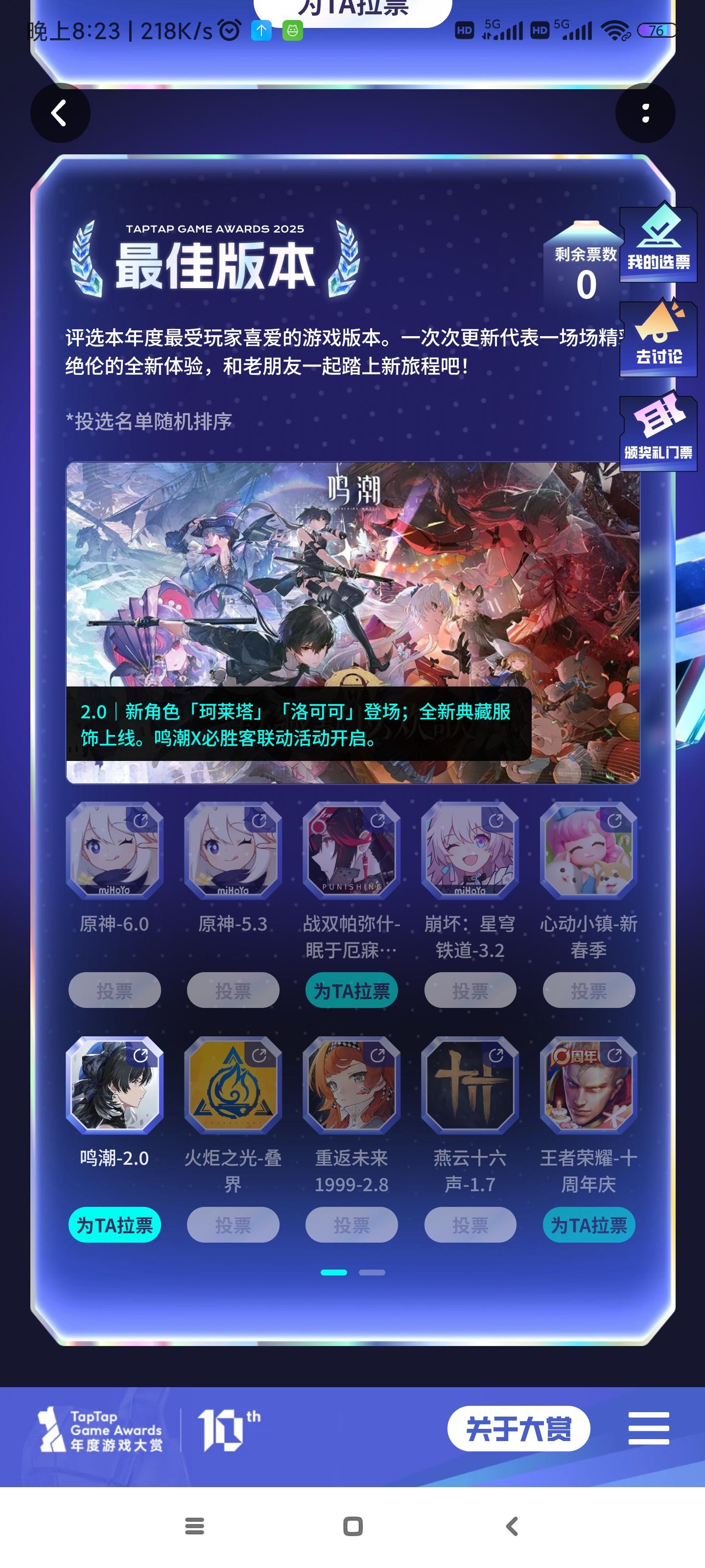 快来 TapTap 加入「2025 TapTap 年度游戏大赏 」 🕹 sfa2XcOq 🎮 https://tap.cn/lPosHIYrn 复制整段,打开 TapTap 发现好游戏#今天游戏圈发生了啥 #战双帕弥什 #鸣潮 #TapTap徽章 #TapTap头像框