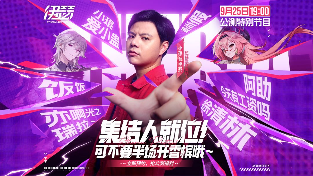 集结人已就位,立即预约,9月25日,伊瑟公测之夜——超链武竞,巅峰对决! 在伊瑟的竞技场上,可不要半场开香槟哦! 超链接入,集结人档案持续读取中..... #伊瑟 #伊瑟公测定档0925 #UZI #柯洁 #小孩 #曾卓君