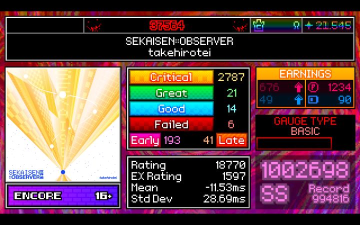16000!!!!!祝贺我自己,不过其实很多歌还是糊的XwX 附b20,感觉还是挺抽象的,越级越的(不是) #vividstasis #音游