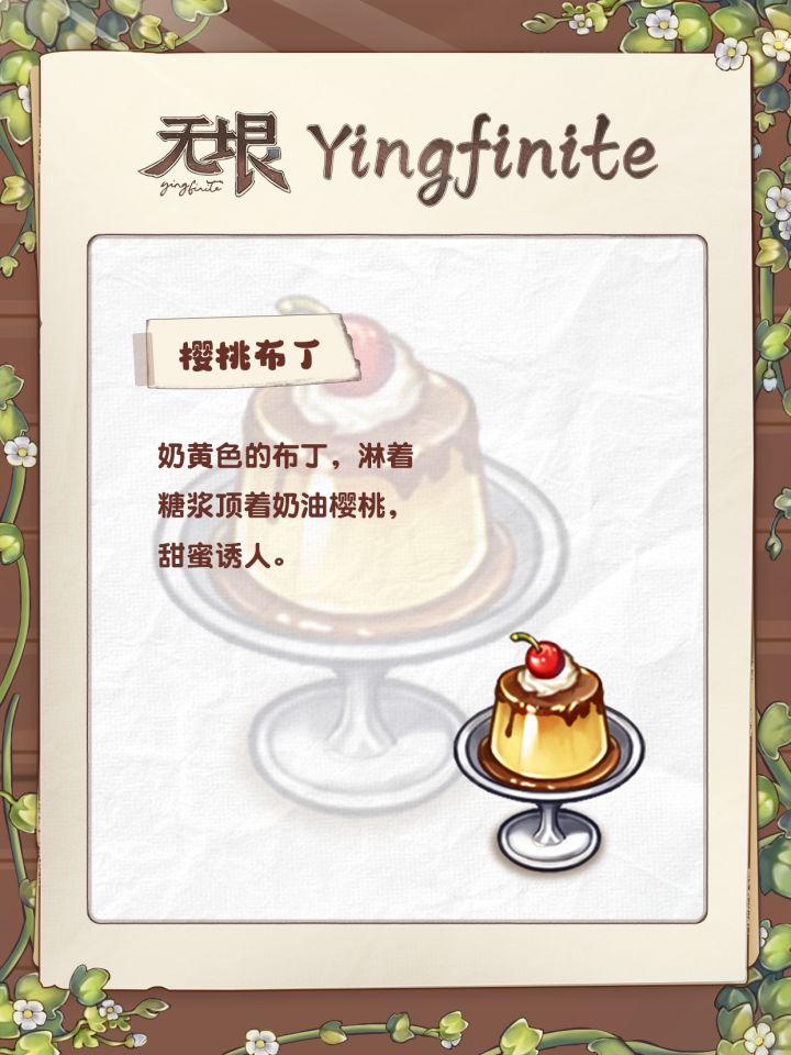 满室阳光的午后时刻,刚烤好的布丁杯沿还坠着水珠,焦糖层在光下裂出琥珀纹理,草莓蛋糕的巧克力奶油顶像初融的雪峰......小垠已经忍不住了呢!【樱桃布丁】奶黄色的布丁,淋着糖浆顶着奶油樱桃,甜蜜诱人~【草莓蛋糕】层叠在一起的蛋糕,巧克力淋面搭配大颗的鲜红草莓,咬上一口,幸福感满满!#装修游戏 #游戏日常 #游戏杂谈#yingfinite无垠