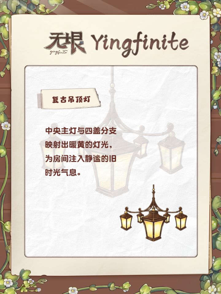已经已经上架无垠商店啦~【复古吊顶灯】中央主灯与四盖分支映射出暖黄的灯光,为房间注入静谧的旧时光气息。【复古侧灯】暖黄的灯光,为房间注入静谧的旧时光气息。【圆筒吊顶灯】哑光金的外层包裹着深色柔光内胆,如悬浮在空中的光之果实。【圆筒侧灯】哑光金的外层投射出温和的柔光。#yingfinite无垠 #发现好游戏 #房屋搭建 #房间布局 #装修游戏 #游戏日常