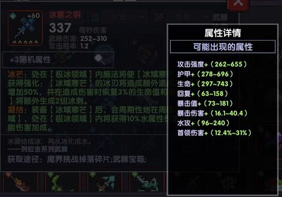 钥匙属性选择【水功、攻强、首领伤害】
