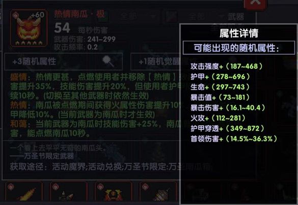 南瓜 极属性选择【暴击、护甲穿透、首领伤害】