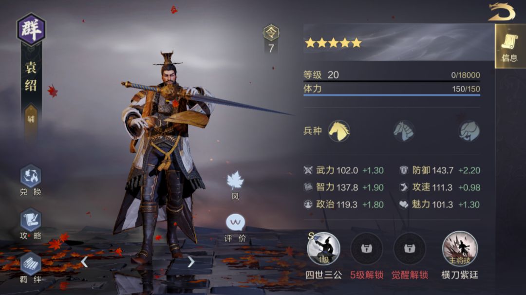 3、提升势力可以获得袁绍,进阶后可以获得孙策。袁绍可以兑换处强力武技【合聚群雄】,孙策则可以作为输出主力使用。