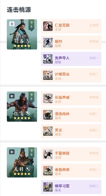 在提供减伤BUFF同时还可以增强队伍中其他武将地输出,配合羁绊【桃园结义】能很好的降低战损。