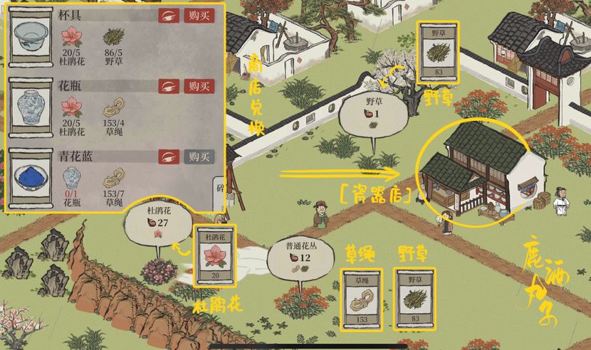 [瓷器店]兑换——[杯具]、[花瓶]、[青花蓝]