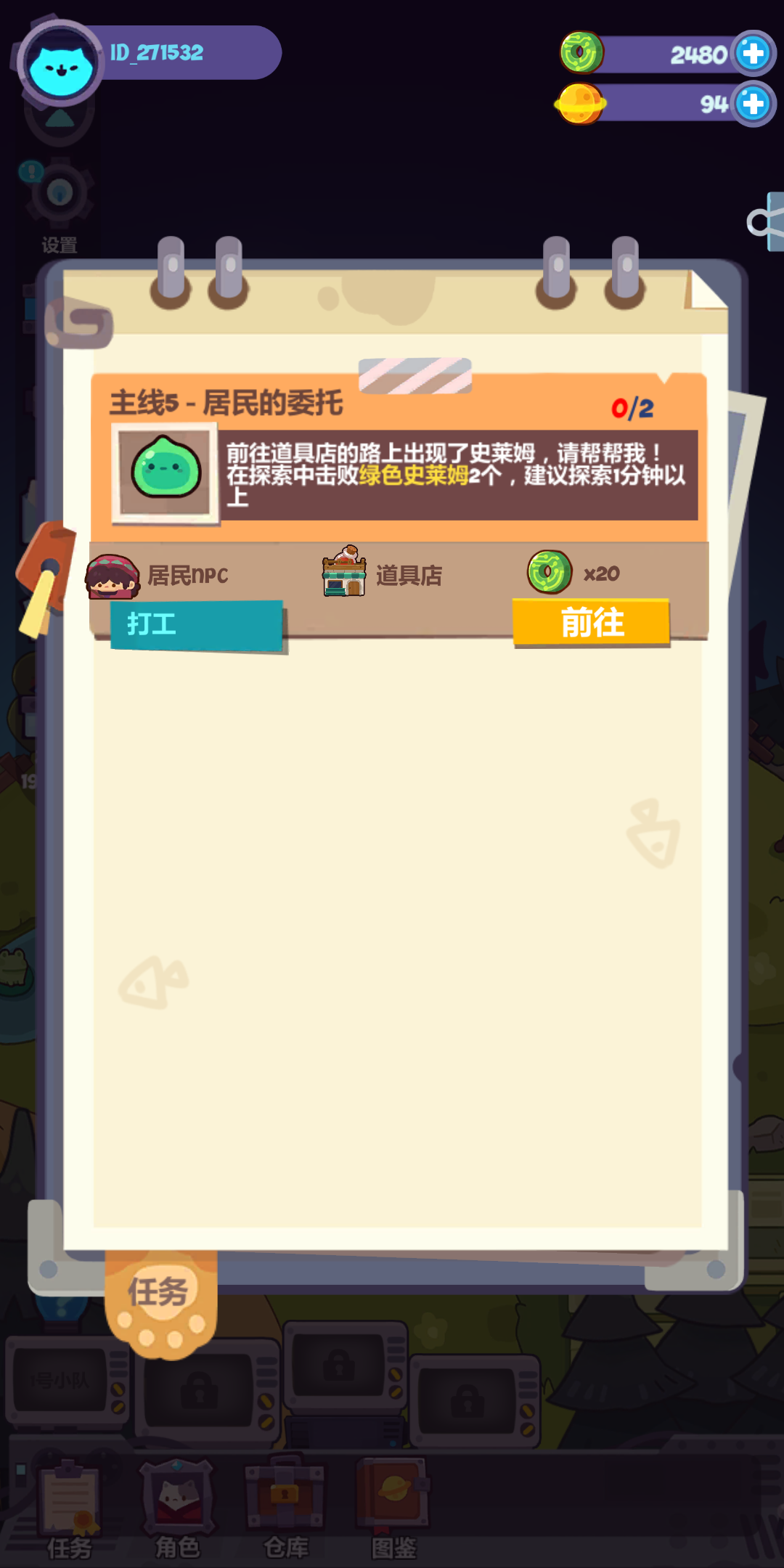 死活完不成任务 口粮还只有狗粮 小药水没开 总不能打两个史莱姆刷一个点儿吧 都好几次了 完不成