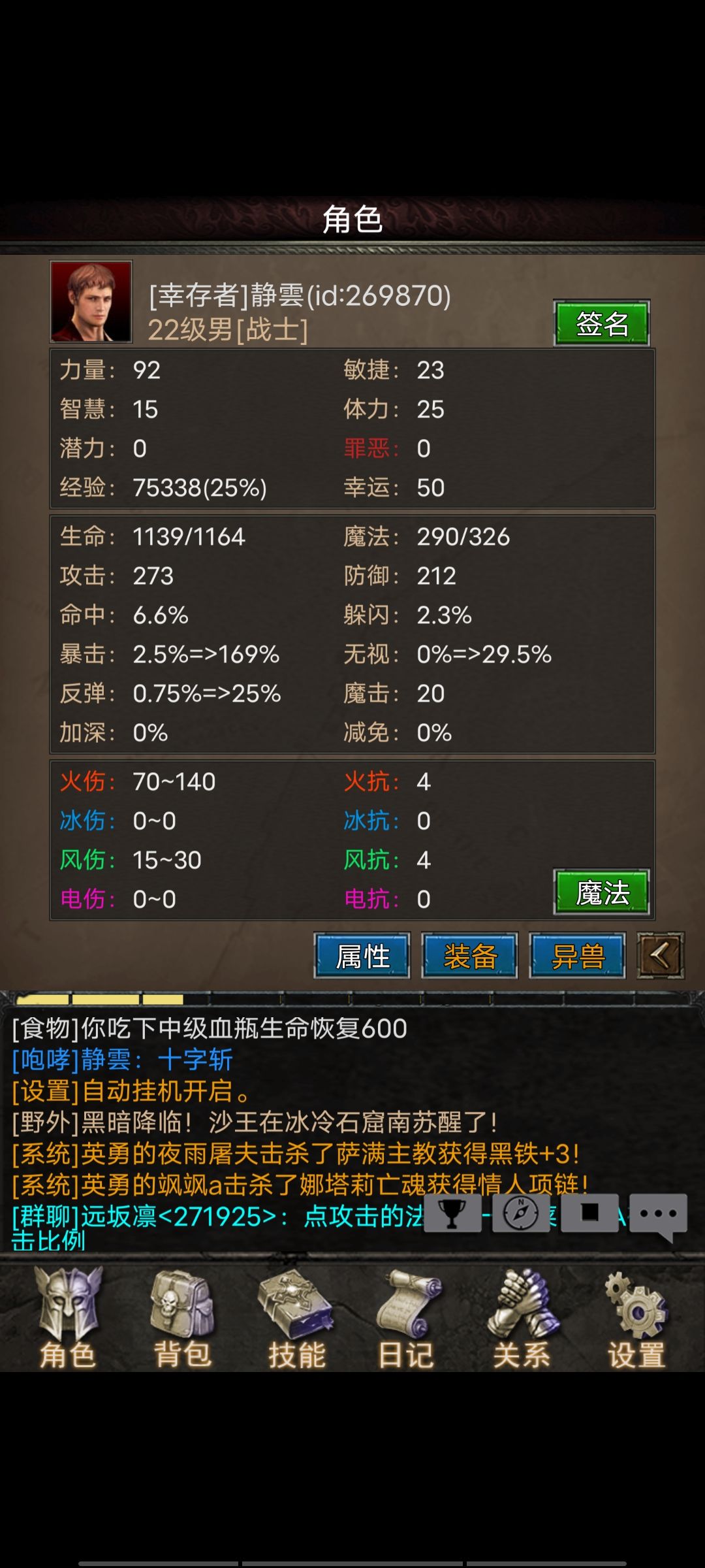 1:战士加点!前期智力15点,敏捷15点,其他全部加力量!(因为武器需要,所以加智力和敏捷)