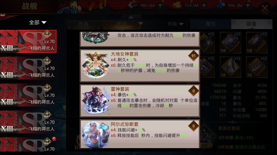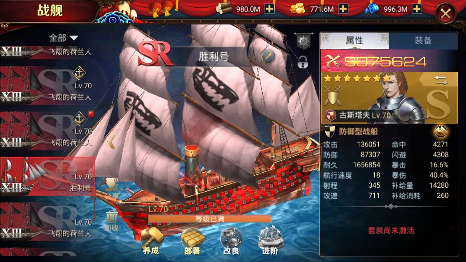 9.原12阶船只“飞翔的荷兰人”提升为13阶船只,属性提升至13阶船只对应属性