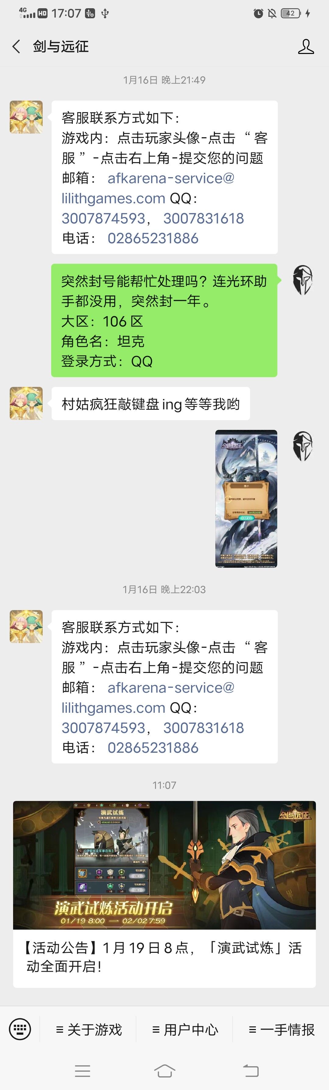 问题:账号于2021年1月16日(周六)21:47左右突然被封号,显示“使用非法程序,破坏游戏环境”封号时长一年。于是开始了艰难的找客服之旅~~