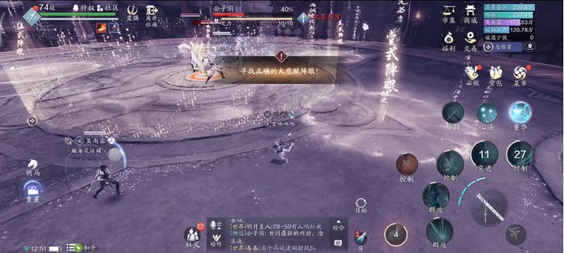 唯一有些区别的就是“大悲七赋”,除了公子羽第一次释放该技能时我们必定从“壹式阵眼”入阵。其后释放便暂时找不到规律了。