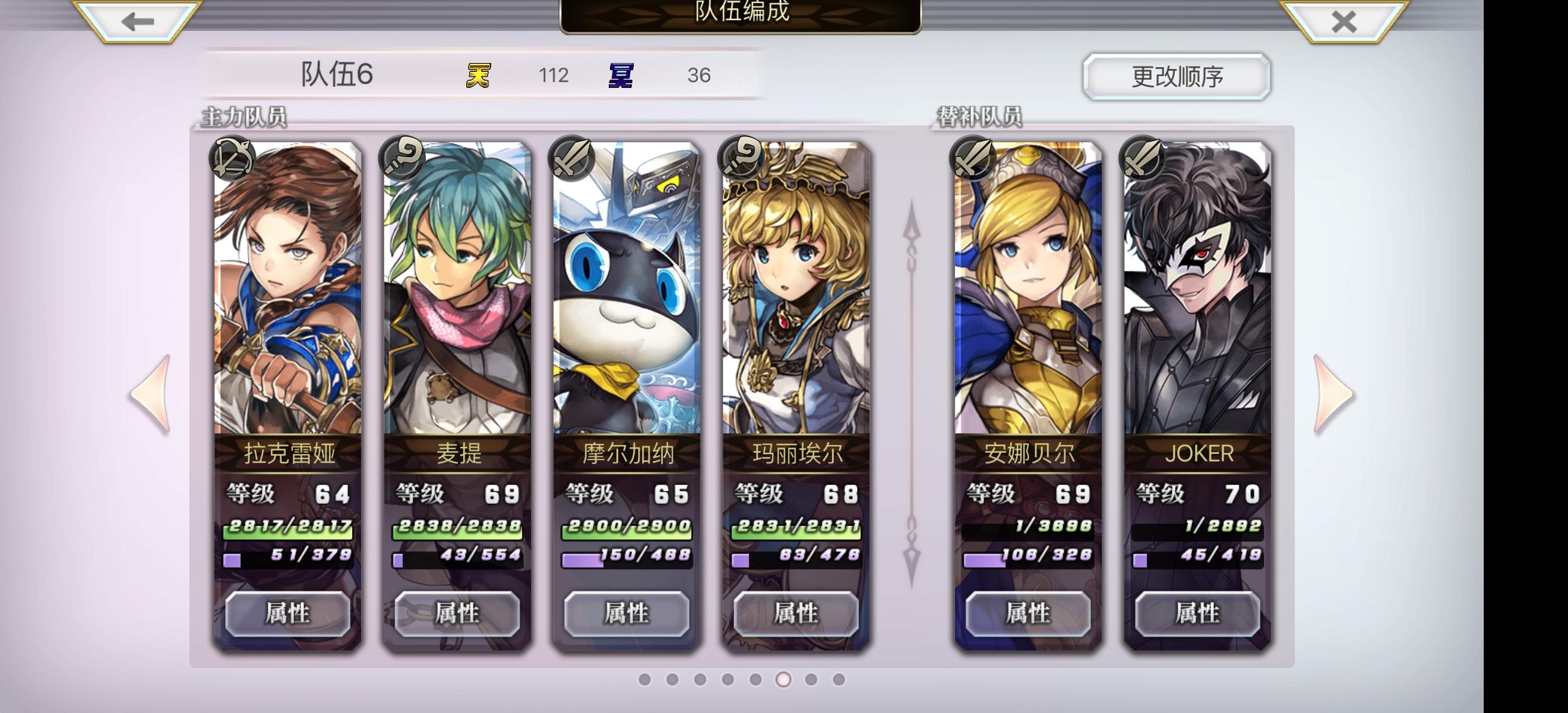 2.我没有鱼妹,输出靠拉克雷亚,麦提和Joker,boss耐性多,火吸收,耐地耐风突等,感觉好多角色上不了场,感觉输出还有点乏力;