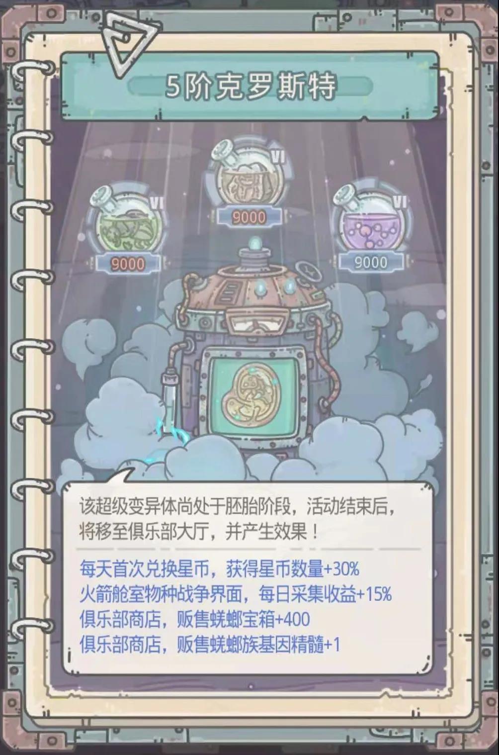 全体【勘探】成员+200以下的【敢死】成员,进入物种地图后,点击地图最上方的电视📺,会出现4阶罗斯特,看到3种颜色瓶子(绿、黄、紫),然后点击其中一个瓶子