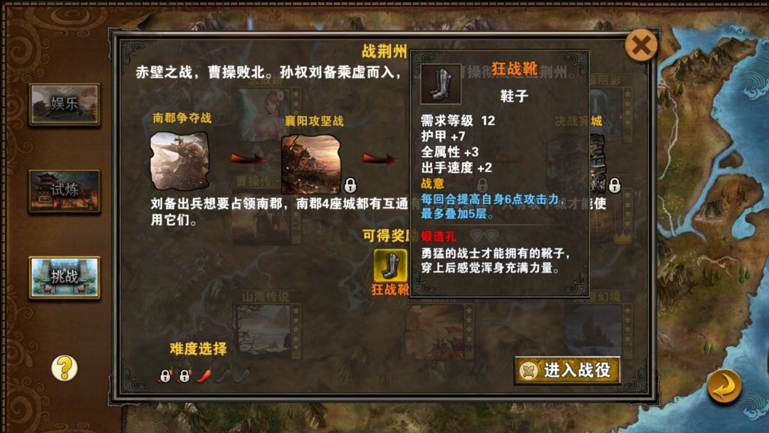 狂战靴,全属性+3,手速+2,每回合+6*5回合。