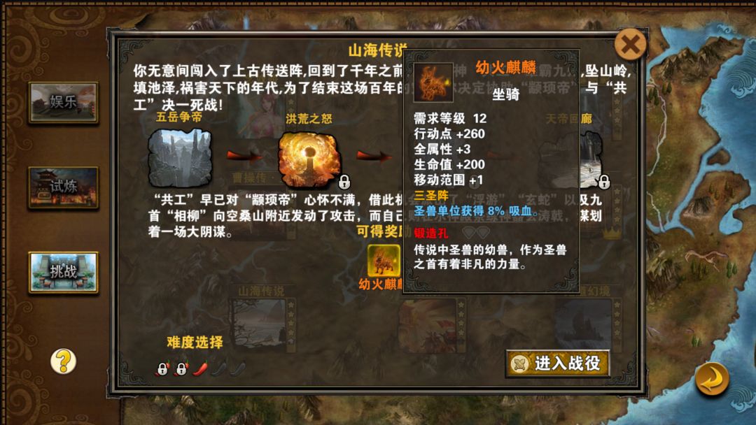 幼火麒麟,3全属性,200血,1范围。三圣阵,为圣兽提供8%吸血。