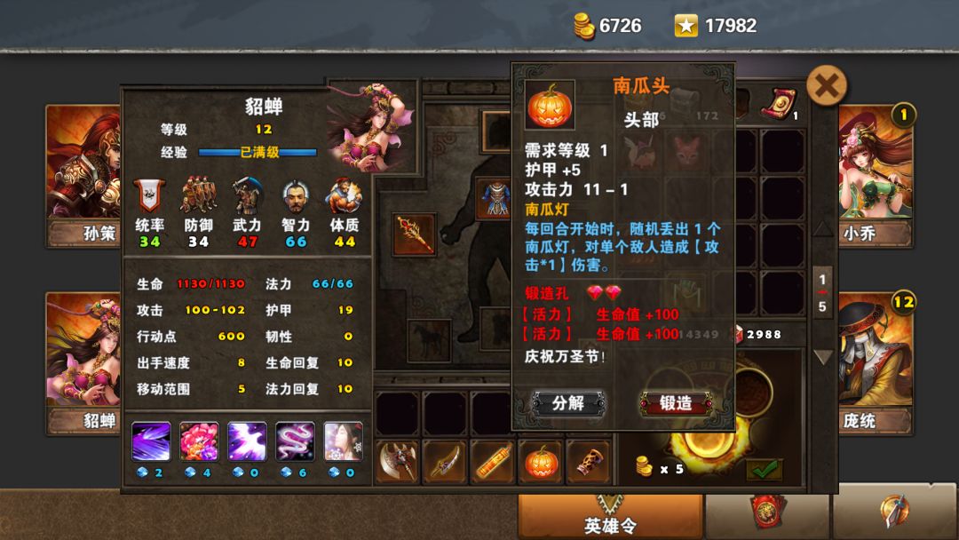 南瓜头,11-1攻。每回合开始时,随机对一个敌人造成100%伤害。玩具。