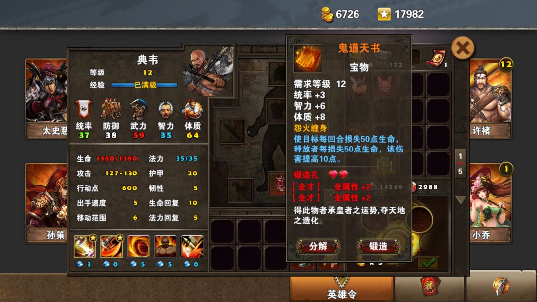 鬼道天书,3统6智8体,使目标每回合损失50生命,释放者每少50伤害多10点。产出于三国鼎立。