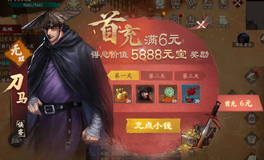 首充即享豪礼,助力镖人之旅!首次充值6元即送无双侠客·刀马!更有珍品红装、炫酷坐骑和时装等你领取,速来!!
