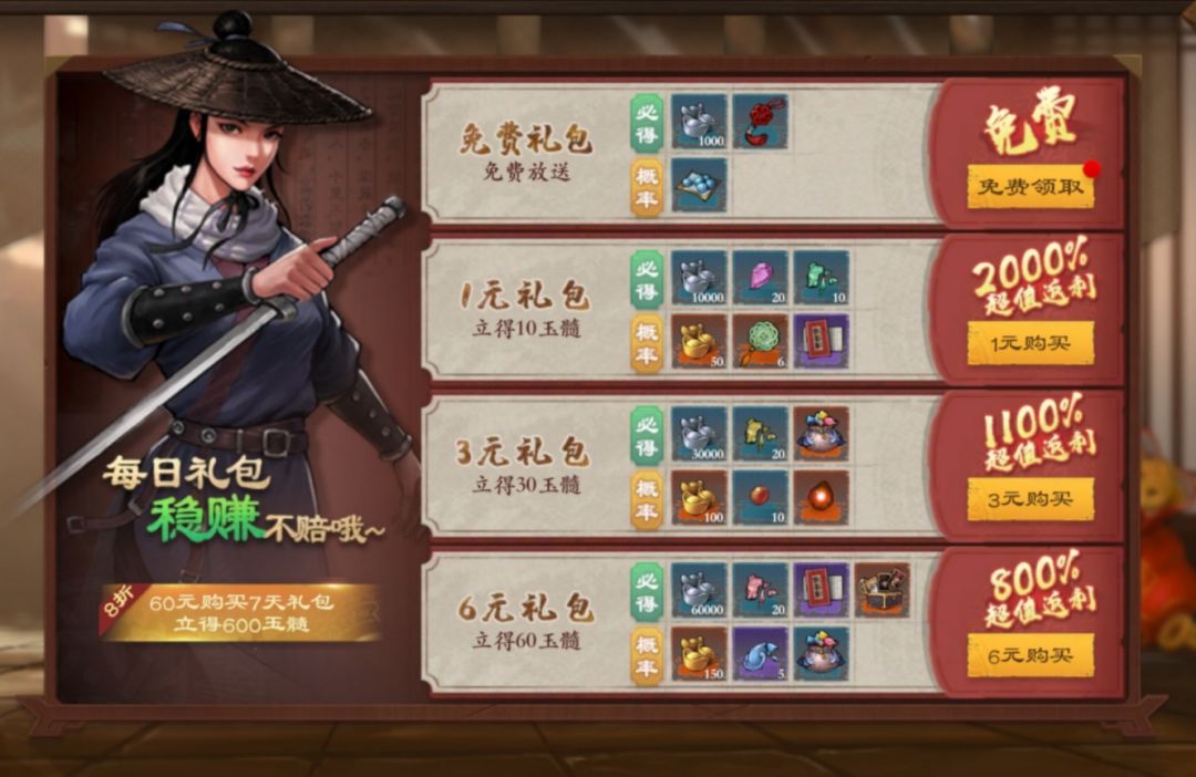 每日限购礼包,三重好礼,最高20倍返利!江湖成长事半功倍,买到就是赚到!