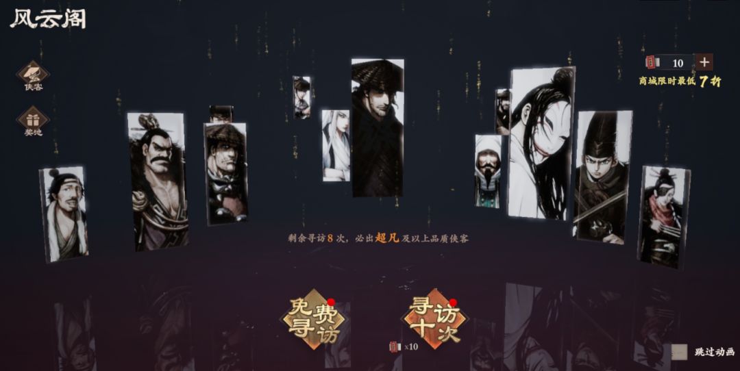 初次见面,好礼相送!玩家解锁侠客风云阁即送侠客十连抽,十连抽必出超凡侠客,镖客大人千万不要错过哦