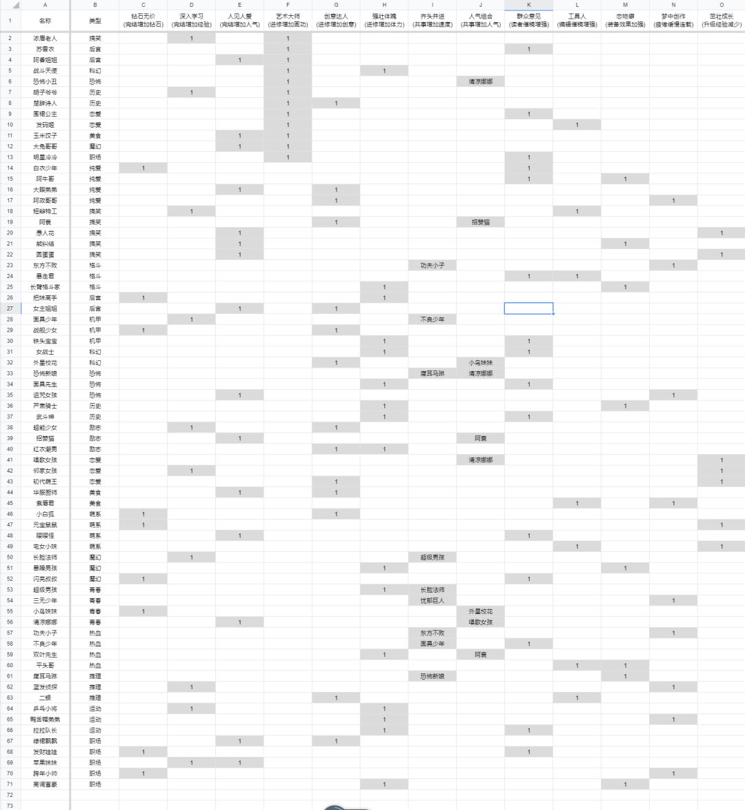 70个漫画家角色技能表