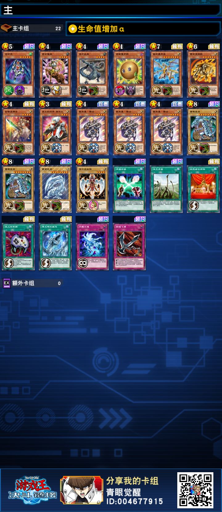 Ps:龙庙可以换成其他从卡组丢牌的卡,三白龙可以换成俩白龙不过卡手概率高,图中1800攻的怪可以换成其他1800或更高的四星及以下等级的怪,不过 创世纪龙骑 不能不带,图中解场的魔法卡和陷阱卡也是可以替换的,必带的是“一张弧光龙 2-3张白龙圣·骑士 1-3张创世纪龙骑 2-3张白龙 0-1张龙庙”就这些,其他的可以找更好的卡来替代,但我自己的卡就这么少,次时代想凑齐8*500*3+5*500=14500最多14500左右,但我这卡10000以内可以出,就是海马要肝到40级,我大概肝了满25个小时才满级的,酌情考虑吧,氪金大佬就不用这么肝,前期基本氪金强,后期才有肝的地位