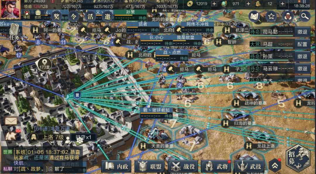 1月6日,以鸿途拿下蒲坂、新丰,战天下取回上洛、占领中陶暂时告于段落。【战天下】只有保住中陶才能守住资源州咽喉,而对于鸿途来说只有拿下中陶,才能挥师东进。围绕战略城池“中陶”的两大联盟战役,就此拉开帷幕。