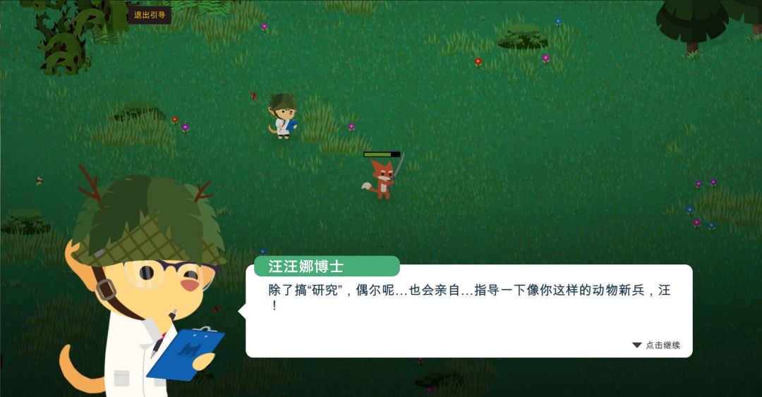哇~从天空中看超级动物世界也太好看了吧!新兵做好开伞准备。小狐狸从空中快速降落,可不要像漫画里的某狐一样忘记带伞!小可爱们落地后,需要按照汪汪娜博士的指示完成相应任务,即可完成新手教学~