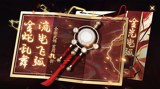 金蛇乱舞,流电飞弧。全新武饰【金光电弧】上架,首周九折!欢迎少侠前往尚衣坊选购!