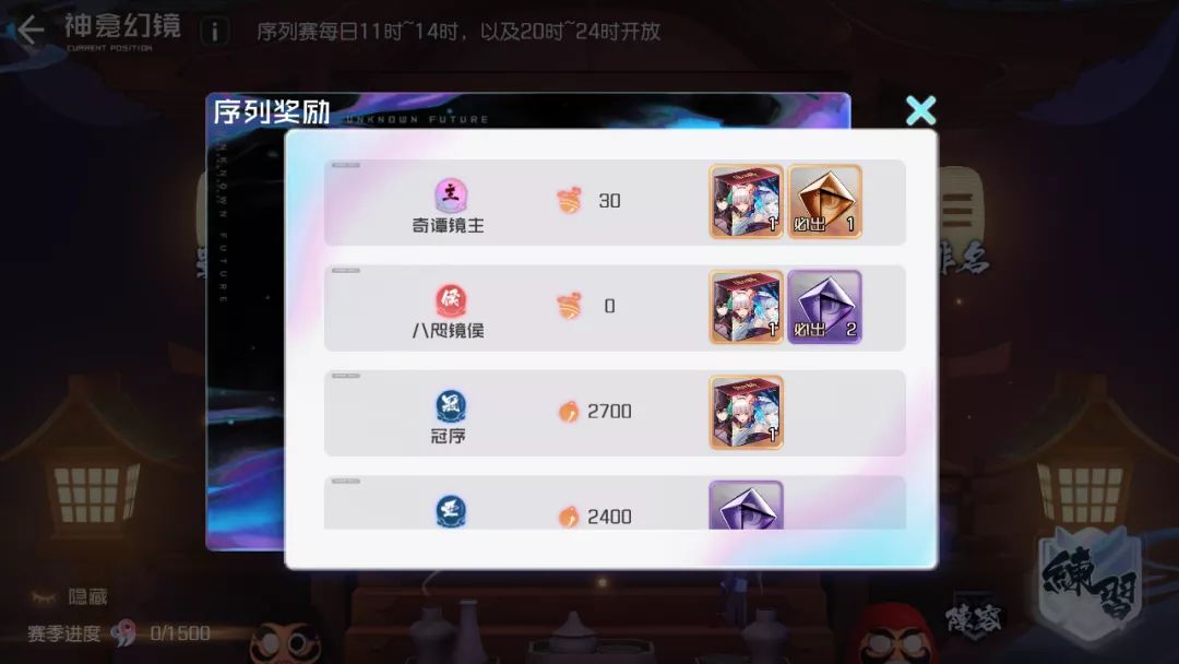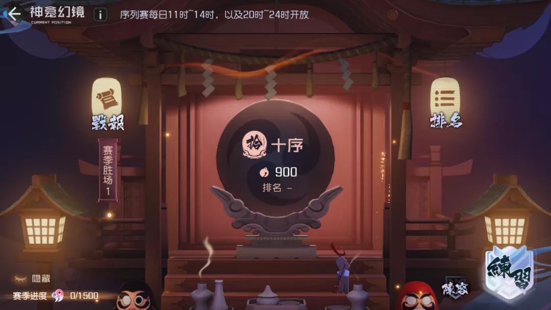 Tips:神龛幻境的每日任务不一定要参加序列赛(序列赛开启时间:每天11点-14点,晚上20点-24点),大家完全可以通过【练习】去完成相应的任务,拿到每日低保勾玉。