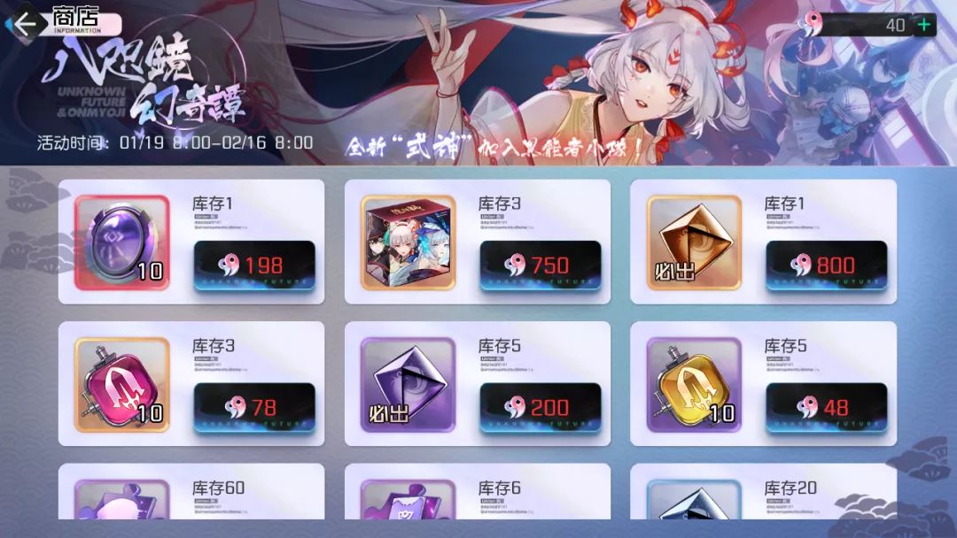 3.商店---大量专武升阶材料、新角色、命运。