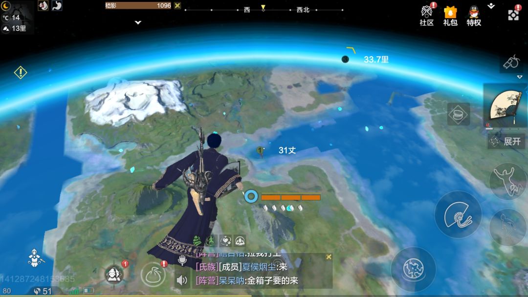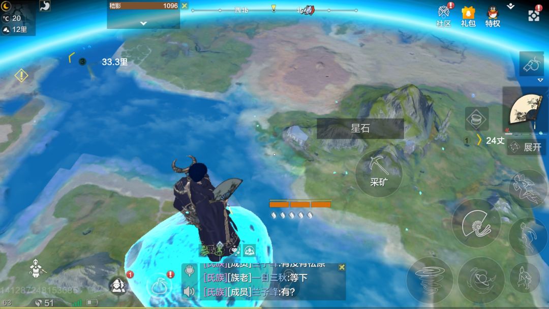 星石在靠近大气层的位置,是天蓝色的小石头,带一个停云扇平a卡位置站到石头上采集。