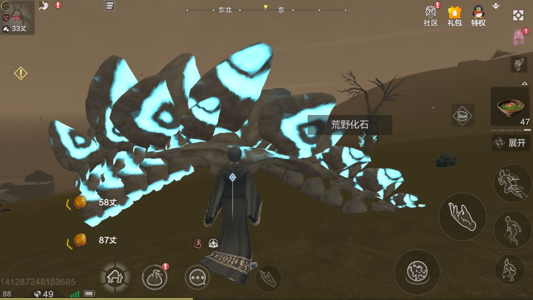 4、路过盆部化石、尾椎化石、脊部化石、腿部化石都可以挖一挖,这几个化石需求量还是有的,升家园等级开星宿点什么的都需要。而且这些化石好像不是固定刷新的,是固定点随机生成不同的化石,盆部的概率有点低。